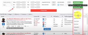 To get more targeted results, Ninja Outreach offers various filters such as Alexa rank, DA, PA, PR, post shares and comments. Also, you can change the type of page you want.