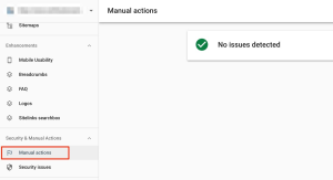 You can check penalties with the help of Google Search Console. Select ‘manual actions’ from the left menu of Google Search Console. Then, if any manual action is imposed on your website, you can see the reason(s).