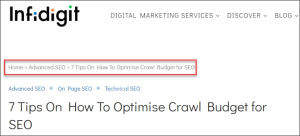 Google always recommends having a breadcrumb trail on your site to make navigation easier for visitors. Ensure your site’s breadcrumb trail is configured correctly according to Google’s specifications.